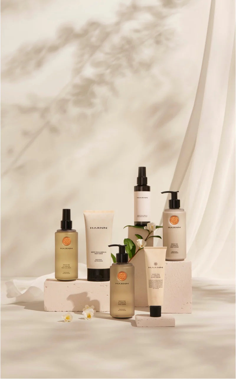 HARNN White Tea and Camellia Body Lotion. Infused with Multivitamin, Niacinamide and a rich combination of Salicylic Acid, Glycolic Acid and Lactic Acid, this body lotion provides moisture and radiance for soft and supple skin while White Tea Extract and Encapsulated Cica helps refresh, hydrate and maintain skin moisture balance.